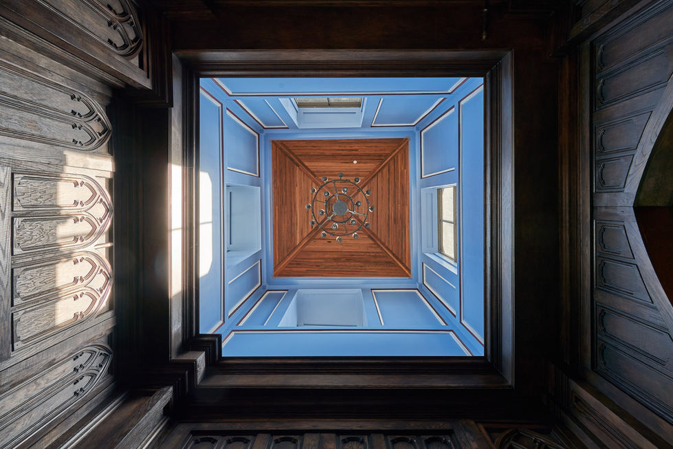 This project transformed a century-old, early 1900s Nashville church into a meticulously renovated home for a music management firm, blending historic preservation with modern functionality. Every element celebrates artistry and detail, from the bell tower’s original stained glass casting colorful light across the space, to a sanctuary fireplace inspired by French chateaux, hand-carved millwork, and custom bookshelves showcasing rare first-edition American, French, and Italian literature, creating a truly singular environment. The space feels alive with history and creativity, offering an inspiring backdrop where music, collaboration, and innovation seamlessly converge.